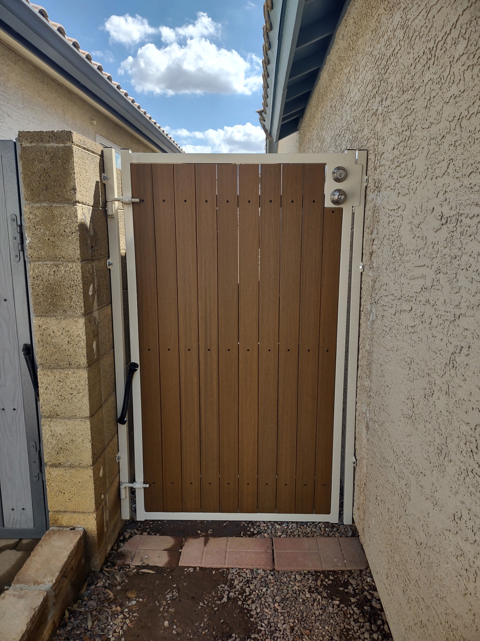 Keypad or smart locks are the best option for busy Arizona homes, particularly those with children or regular visitors. These let you remotely manage access, set unique codes for family members, and get notifications when the gate is opened. For side gates that aren’t always visible from the house, they are really helpful.